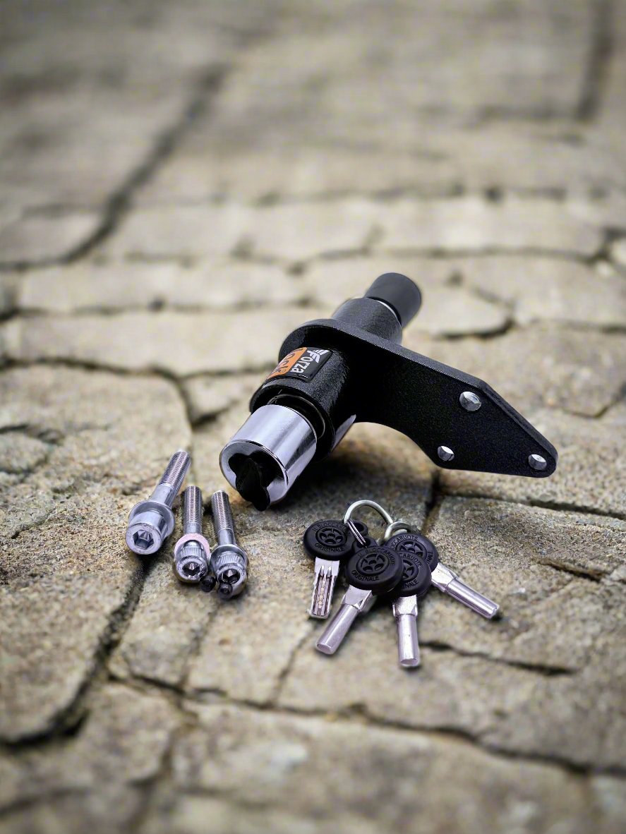 Un pistone di diametro 25 mm, che si inserisce perfettamente nel disco, nella corona o nel cerchio, a seconda del modello di moto, assicurando una protezione solida contro i tentativi di furto.
