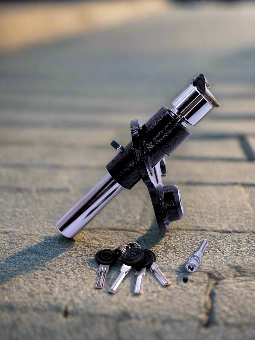 Un pistone di diametro 25 mm, che si inserisce perfettamente nel disco, nella corona o nel cerchio, a seconda del modello di moto, assicurando una protezione solida contro i tentativi di furto.